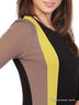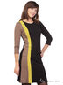 Эффектное платье приталенного силуэта с округлым вырезом горловины и длинным рукавом. Контрастные вставки. Отличный вариант для создания повседневного образа.