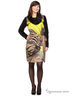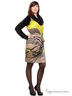 Неординарное платье прямого силуэта с длинным теплым рукавом и объемным теплым воротом. Пояс в комплекте. Изделие украшено рисунками. Отличный вариант для создания оригинального образа.