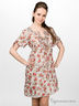 Детали: яркое платье с оригинальный вырезом, короткие рукава, спереди завязки, завышенная талия на тонкой резинке, глубокий вырез отделан металлическими пайетками.