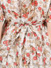 Детали: яркое платье с оригинальный вырезом, короткие рукава, спереди завязки, завышенная талия на тонкой резинке, глубокий вырез отделан металлическими пайетками.