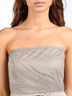 Элегантное платье без лямок. Лиф декорирован тонкой сеточкой. Под грудью декоративный элемент. Застежка-молния.