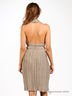 Детали: платье из плиссированной ткани. Лямка через шею, под грудью атласная лента, сзади сверху изделие на резинке.