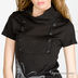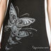 Стильное платье из мягкого трикотажа с широким воротником-стойкой и короткими рукавами. На груди планка с двумя рядами пуговиц. Спереди оригинальный принт в виде бабочки.