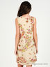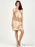 Детали: глубокий круглый вырез горловины, без рукавов, поверх ткань полупрозрачная с ярким принтом отделанным пайетками.