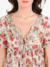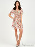 Детали: яркое платье с оригинальный вырезом, короткие рукава, спереди завязки, завышенная талия на тонкой резинке, глубокий вырез отделан металлическими пайетками.