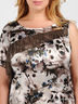 Детали: круглый вырез; один короткий цельнокроеный рукав; декорировано оригинальным принтом и шифоновыми оборками