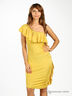 Детали: платье оригинального кроя на одно плечо, лиф отделан воланом, одна тонкая лямка, по шву изделия сборка с воланом.