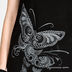 Стильное платье из мягкого трикотажа с широким воротником-стойкой и короткими рукавами. На груди планка с двумя рядами пуговиц. Спереди оригинальный принт в виде бабочки.
