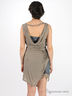 Элегантное платье необычного кроя. Вырез-качели. Сбоку драпировка. Неровный них изделия. Внутри сарафан на тонких регулирующихся лямках с тонким кружевом внизу.