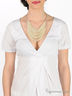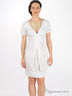 Однотонное платье с коротким рукавом. Манжеты отделаны трикотажной резинкой. Лиф с запахом В комплект входит колье из бисера.