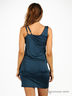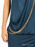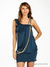 Оригинальное платье, присборенное по бокам и на лямках. Декорировано цепочкой.