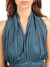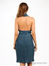 Платье из плиссированной ткани. Лямка через шею. Под грудью атласная лента. Сзади сверху изделие на резинке.