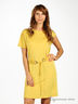 Платье необычного кроя. Цельнокройный короткий рукав с одной стороны и лямка с другой. Оригинальный пояс, пришитый на талии.