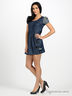 Очаровательное платье слегка расклешенного кроя отлично дополнит гардероб своей оригинальностью и удобством носки. Округлый вырез горловины дополнен трикотажной лентой с прошитыми складками. Рукава-фонарики собраны на резинку снизу. Полочка и спинка декорированы прошитыми складками. Платье декорировано набивным рисунком и вышивкой стеклярусом и бисером.