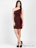 Стильное платье из тонкого, эластичного трикотажа. Ассиметричный вырез горловины. Полочки и спинка декорированы вставкой из трикотажного велюра. На полочке заложены крупные односторонние складки. Изысканный вариант для вечернего мероприятия.