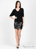 Стильное платье из тонкого, мягкого трикотажа. V-образный вырез горловины. Укороченные цельнокроеные рукава с манжетами. Линия талии заниженная, дополненная резинкой. Манжеты и перед юбки выполнены из ткани с эффектом под кожу. Подол декорирован оригинальными декоративными элементами. Будьте всегда в центре внимания.