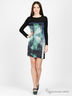 Потрясающее платье из тонкой, легкой ткани. Модель прямого силуэта. Округлый вырез горловины. Застежка на пуговицу на спине. Длинные облегающие рукава. Полочка и спинка дополнены вставками из полупрозрачной ткани. На полочке крупный печатный рисунок. Будьте всегда в центре внимания!