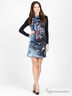 Стильное платье из тонкой атласной ткани и эластичного трикотажа. Округлый вырез горловины. Длинные облегающие рукава. На полочке заложены крупные складки, образующие эффектную драпировку. На полочке крупный печатный узор. Стильный вариант для тех, кто любит комфорт и качество.
