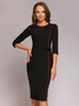 Платье-футляр черное длины миди с контрастным кантом.