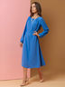 Платье голубое длины миди с пышными рукавами.