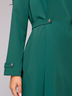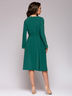 Платье изумрудного цвета длины миди с отделкой пояса и рукавов.