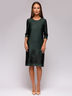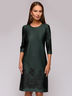 Платье изумрудного цвета длины мини с имитацией кружева на подоле и рукавах.