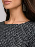 Платье серое длины мини с геометрическим принтом и длинными рукавами.