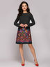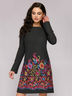 Платье серое длины мини с вышивкой и длинными рукавами.