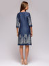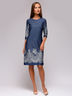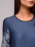 Платье синее длины мини с имитацией кружева на подоле и рукавах.