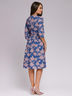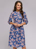 Платье синее длины миди с принтом и рукавами 3/4.