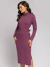 Платье цвета сливового вина длины миди с длинными рукавами.