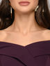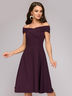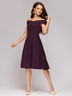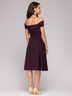 Платье сливового цвета длины миди с открытыми плечами.