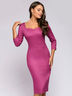 Платье-футляр ягодного цвета длины миди с глубоким вырезом.