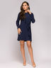 Платье темно-синее длины мини с воланом и длинными рукавами.