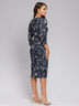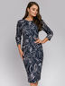 Платье-футляр темно-синее длины миди с принтом и рукавами 3/4.