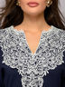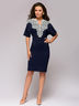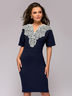 Платье темно-синее длины мини с кружевной отделкой.