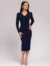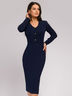Платье темно-синего цвета с декоративными пуговицами.