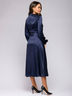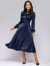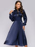 Платье темно-синее с завышенной талией и объемными рукавами.