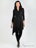 Платье-Туника полуприлегающего силуэта. Выполнена из вискозного трикотажного полотна черного цвета с рисунком «в крапинку» с эффектом матового серебра и черного однотонного (рукава, нижняя часть спинки и переда). В шов по талии вставляются шлевка и пояс, с заложенными складками. В шлевку продевается отлетная часть правой верхней детали переда.