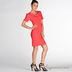 Стильное платье с эффектами драпировки на линии бедер. Округлый вырез окантован широкой полосой ткани, рукав-фонарик дополнен отгибом ткани. Лиф платья отрезной, линия талии завышена. Платье скроено клиньями по фигуре. Боковые клинья выполнены со сборкой, что придает платью оригинальный вид. На спинке застежка-молния.