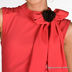 Женственное платье приталенного силуэта средней длины без рукавов. Невысокий отложной воротничок-стойка. Линия плеча выполнена со сборкой. Крой по фигуре, сзади застежка-молния. В качестве декоративного дополнения - бант с цветком у выреза горловины.