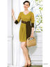 Стильное нарядное платье для девушек. Рукав 3/4, овальный вырез горловины, прямой силуэт. Сложный крой с интересным дизайнерским подходом, драпированный лиф, на поясе украшение в виде декоративного пришивного украшения.