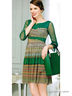 Стильное летнее платье для девушек. Рукава 3/4, округлый вырез горловины, расклешенная юбка. Сложный крой с интересным дизайнерским подходом.