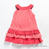 Расклешенная модель из комбинированных тканей. Множественные оборки, декоративные аппликации, вышивка и нашивки на полочке.