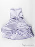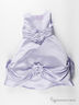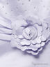 Нарядное платье выполнено из тонкой атласной ткани с батистовой подкладкой. Округлый вырез горловины, застежка на молнию на спине, полочка декорирована стразами, отрезной пояс декорирован атласным фактурным цветком , на спинке лента, завязывающаяся в бант, пышный низ изделия декорирован драпировкой с атласными цветами и дополнен подкладкой с сетчатой оборкой.