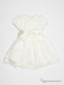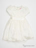 Нарядное платье с короткими рукавами, округлым вырезом горловины. Модель декорирована бантом, завязывающимся сзади, и маленькими серебряными сердечками.