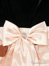Нарядное платье из атласной ткани с округлым вырезом горловины, с застежкой на молнию на спине. Отрезная юбка декорирована органзовым прозрачным полотном и поясом с бантом. Хлопковая подкладка дополнена сетчатой тканью, хорошо держащей форму.
