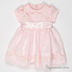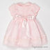 Красивое нарядное платье из атласной ткани с застежкой на молнию на спине. Отложной воротник декорирован стразами, короткий рукав. Втачной атласный пояс, отрезная юбка с органзовой поверхностью декорирована кружевом с пайетками и с бусинами.