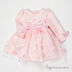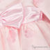 Нарядное платье из атласной ткани с газовой поверхностью, с округлым вырезом горловины, с застежкой на молнию на спине. Длинный прямой рукав декорирован атласным бантом. На талии атласный пояс с бантом.