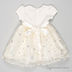 Нарядное платье из нежной атласной ткани с застежкой на молнию на спине. Полочка декорирована съемной брошью со стразами. Втачной атласный пояс, отрезная юбка декорирована органзовой тканью с пайетками.